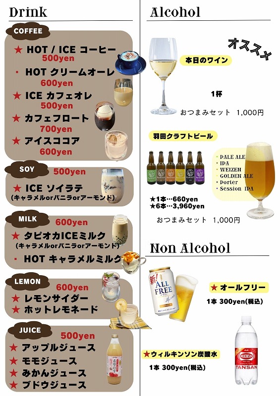 入店時に、90分または3時間の利用料のお支払いが必要です。不定期で軽食メニューを追加できる場合があります。