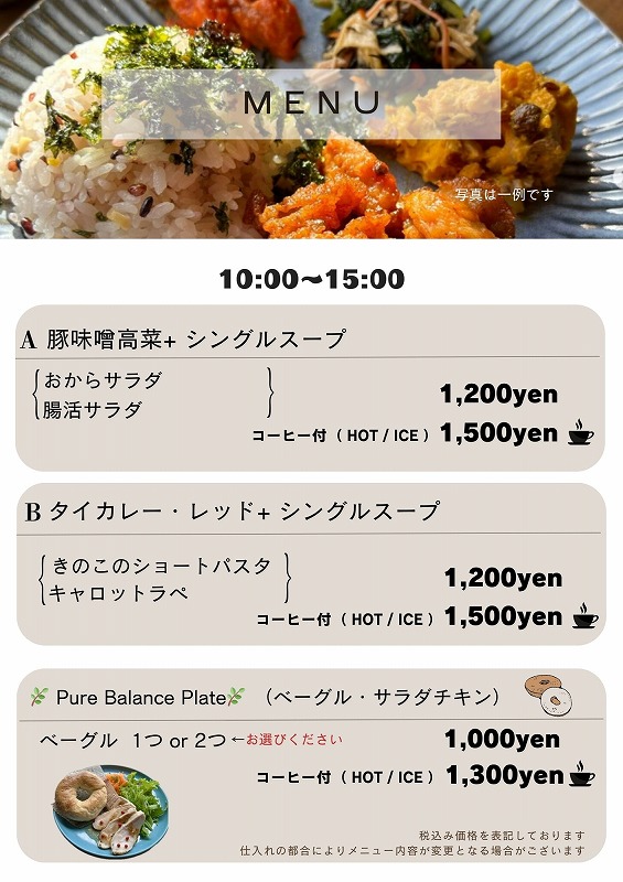 メニューは「図書室の日」と「カフェの日」があります。