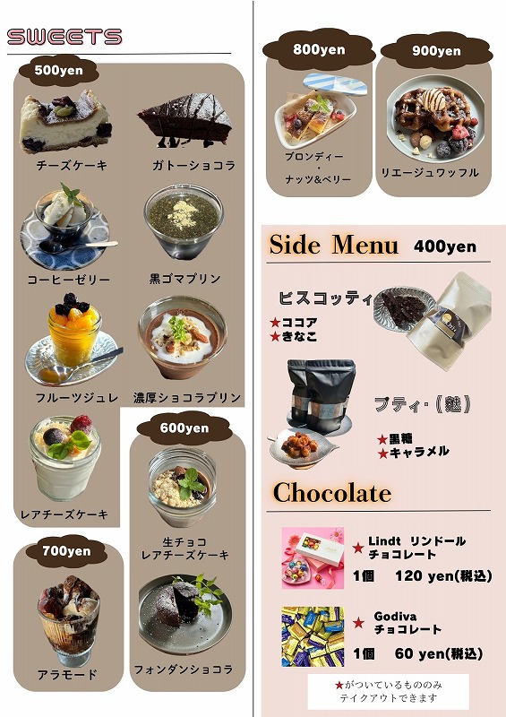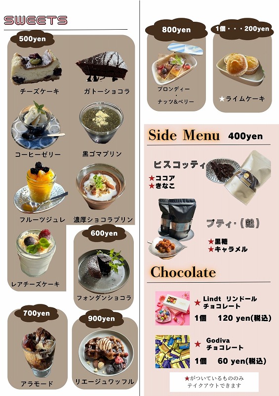 - ・Sセット(スイーツ) 600円