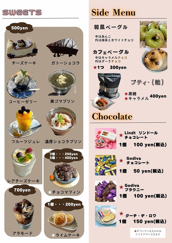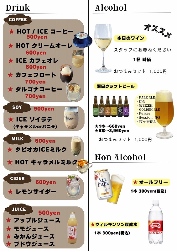 入店時に、90分または3時間の利用料のお支払いが必要です。不定期で軽食メニューを追加できる場合があります。